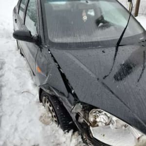 Разбито с пассажирской стороны крыло,разбита фара,без бампера,сорвана рулевая тяга,радиатор под замену.
