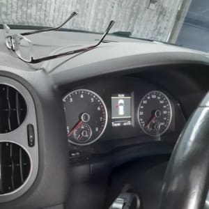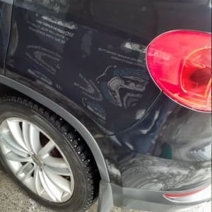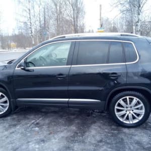 Продам автомобиль Фольцваген Тигуан. черный цвет, 2 литра, 170 л.с., бензин, автомат "чистый", салон ткань, обвес "аир лайн". Все работает, коробка и двигатель без проблем. Комплектация "спорт енд стайл". Диски литые R18, поэтому машина выглядит высокой.