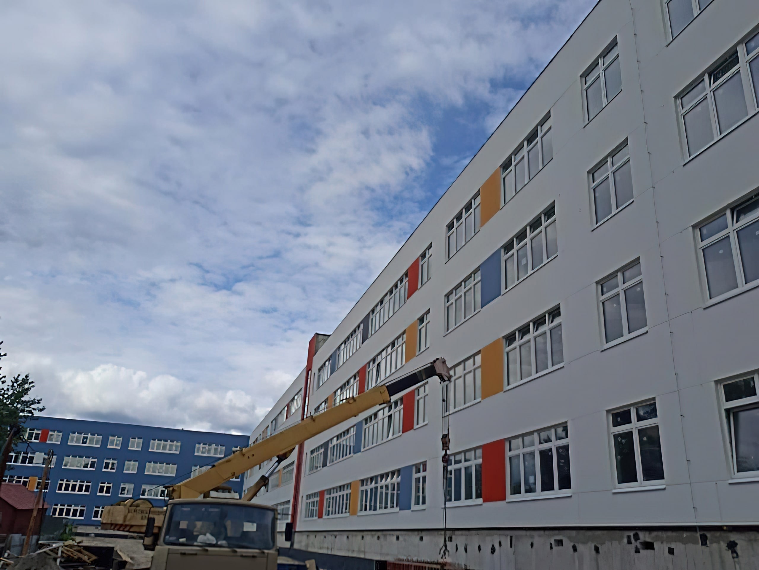 Как на своей странице в социальной сети написал председатель карельского парламента Элиссан Шандалович, подрядчик на строительстве школы в Медвежьегорске полностью обустроил кровлю и установил окна, внутри здания идет окраска стен, монтаж потолков, укладка плитки в санузлах.
