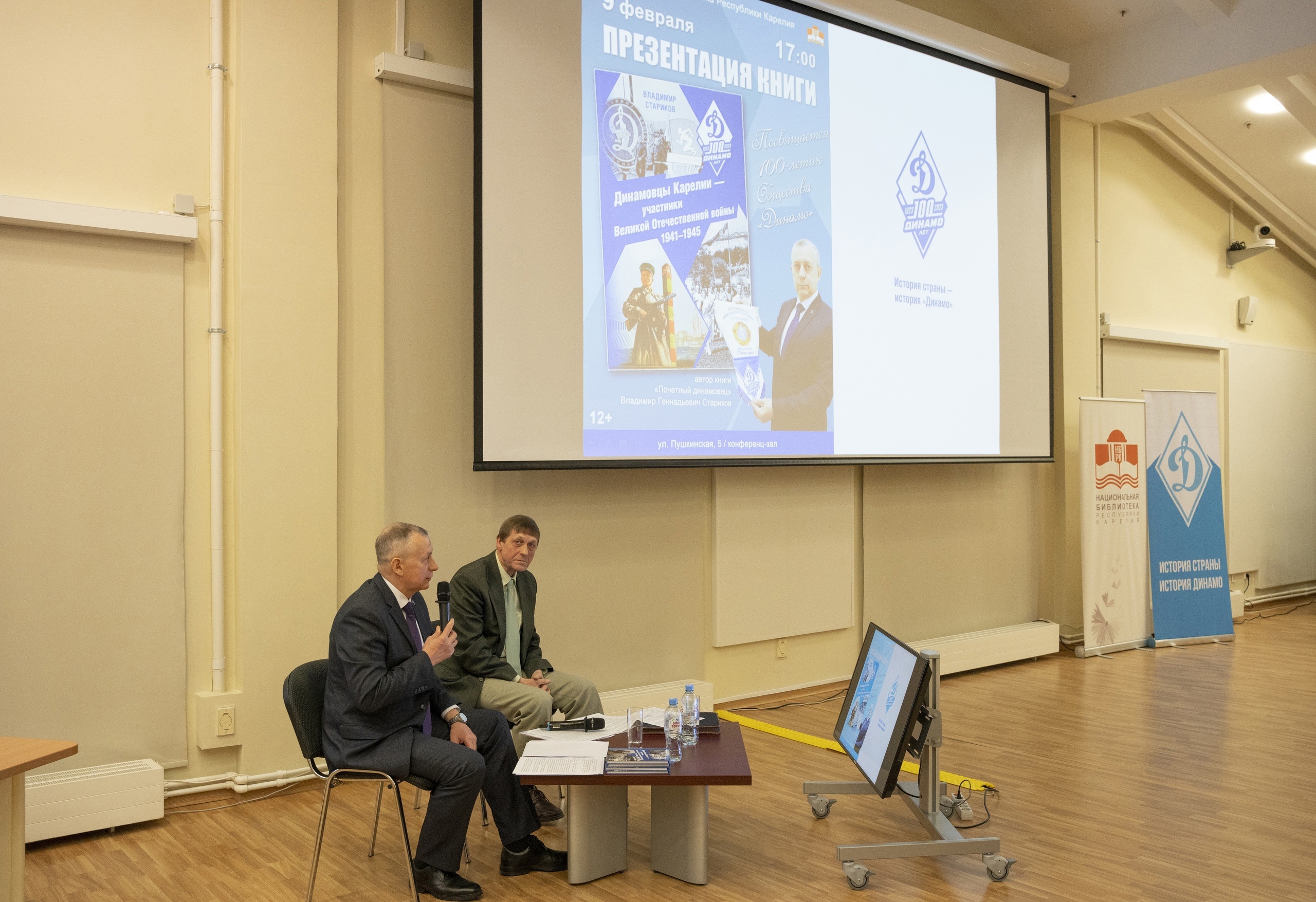 На встрече Владимир Стариков и редактор книги, Заслуженный работник физической культуры РФ Евгений Шорохов рассказали о том, как шла работа над книгой, познакомили присутствующих с уникальными и героическими биографиями карельских динамовцев.