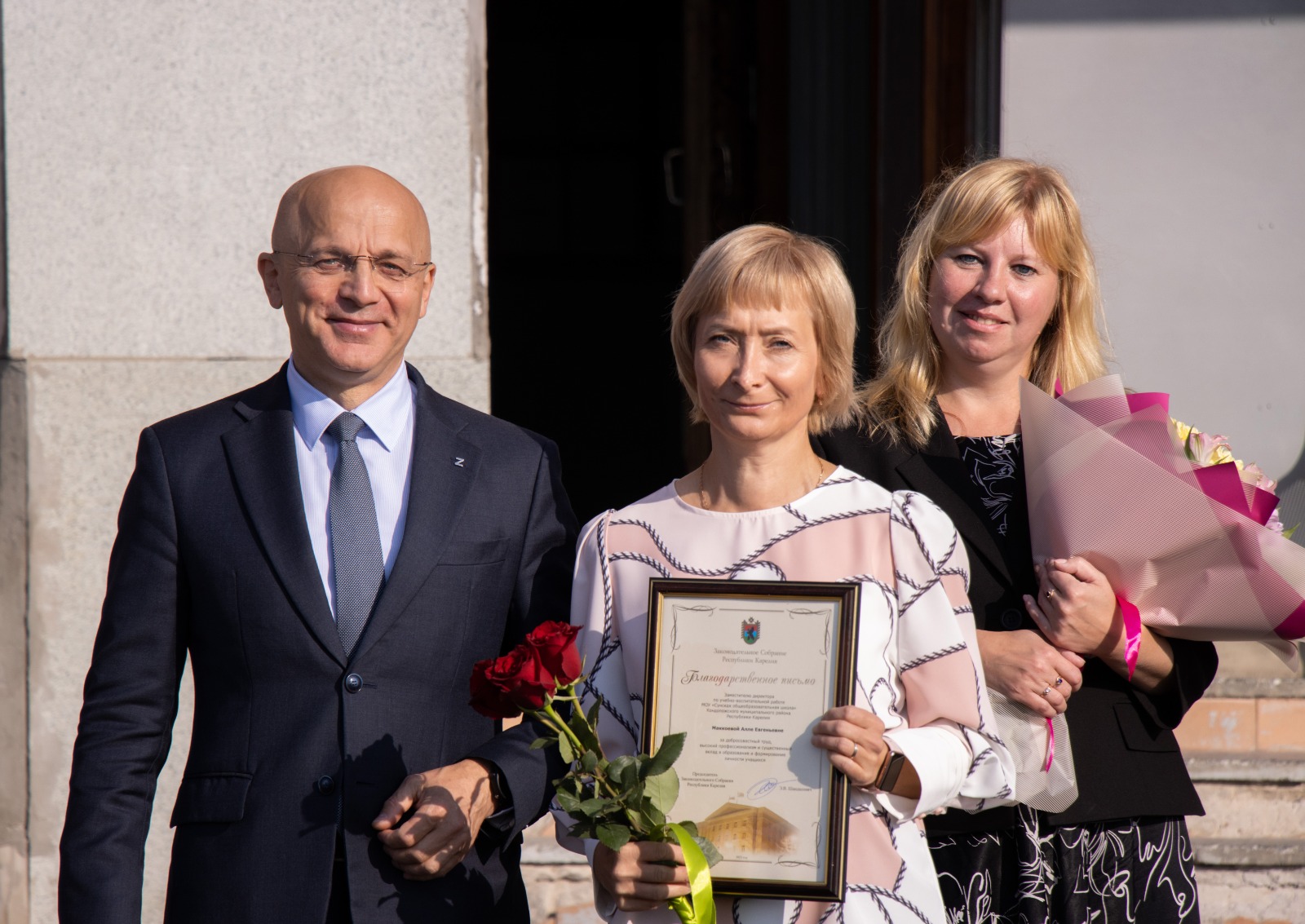 Председатель Заксобрания обратился со словами благодарности к педагогам школы. Он отметил профессиональные и творческие достижения педагогического коллектива: учителя активно участвуют в различных конкурсах и побеждают.
