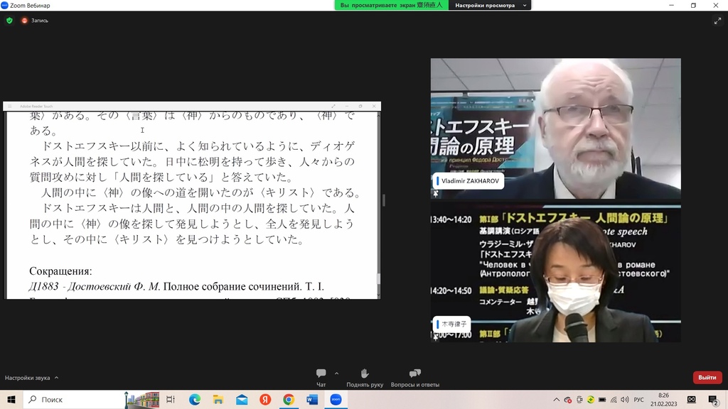 21 февраля в Нагойском университете в рамках "Мастерской Достоевского", проходящей в конце февраля в Японии, состоялась лекция Владимира Николаевича Захарова, заведующего кафедрой классической филологии,