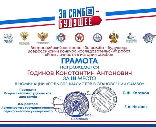Объявлены итоги Всероссийского конкурса исследовательских работ "Роль личности в истории самбо", прошедшего в Армавирском государственном педагогическом университете в рамках Всероссийского конгресса "За самбо - будущее!".