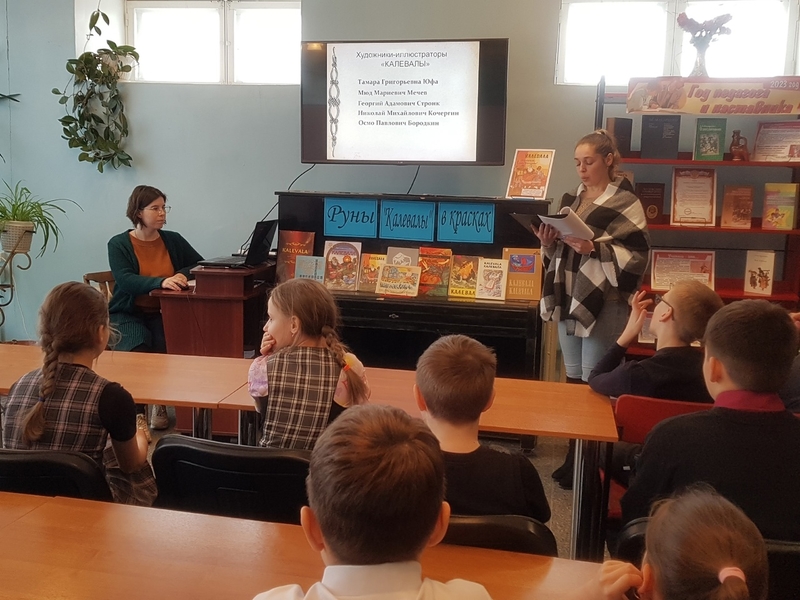 Ко Дню рождения «Калевалы», который отмечается 28 февраля, сотрудники детско-юношеского отдела провели для дошкольников ДОУ №17 группы «Светлячок» и младших школьников 4 «А» класса школы №7 мероприятия «Руны «Калевалы» в