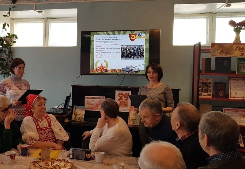 Сотрудники библиотеки поздравили всех сидящих в зале мужчин с Днём защитника Отечества, рассказали о доброй традиции чествовать героев Отечества в нашей стране, прочитали им стихи о воинской доблести, о настоящих защитниках и патриотах Родины.