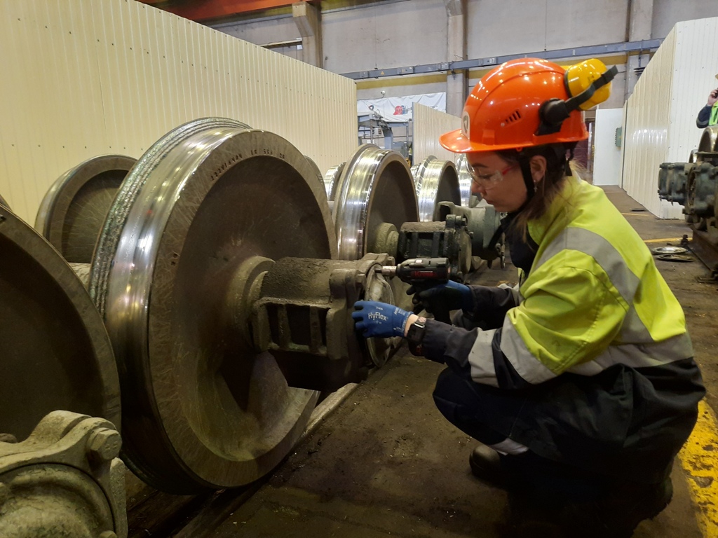 – По причине больших нагрузок, возникающих в процессе эксплуатации локомотивов, стирается гребень колёсной пары, на рабочей поверхности появляются различные дефекты – выбоины и сколы. Чтобы не допустить разрушения рабочих механизмов и не создать аварийную ситуацию, проводится регулярная обточка колёсных пар железнодорожной техники. Эти работы на нашем участке выполняет токарь. У нас всегда был мужской коллектив, а сейчас девушки пришли. Глаз радуется, приятно с ними работать,– рассказывает начальник участка ремонта железнодорожной техники управления транспорта Владимир Беликов.