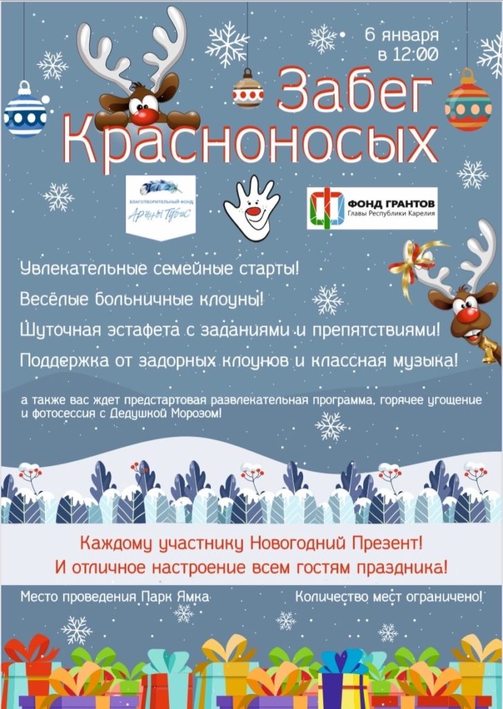 В пятницу, 6 января, в центре Петрозаводска пройдет благотворительный забег и праздник для детей, который проведут больничные клоуны фонда имени Арины Тубис .