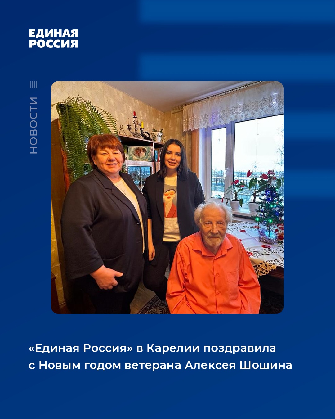 «Единая Россия» в Карелии поздравила с Новым годом участника Сталинградской битвы Алексея Шошина. Фото взято из группы «Единая Россия | Республика Карелия» в социальной сети «Вконтакте».