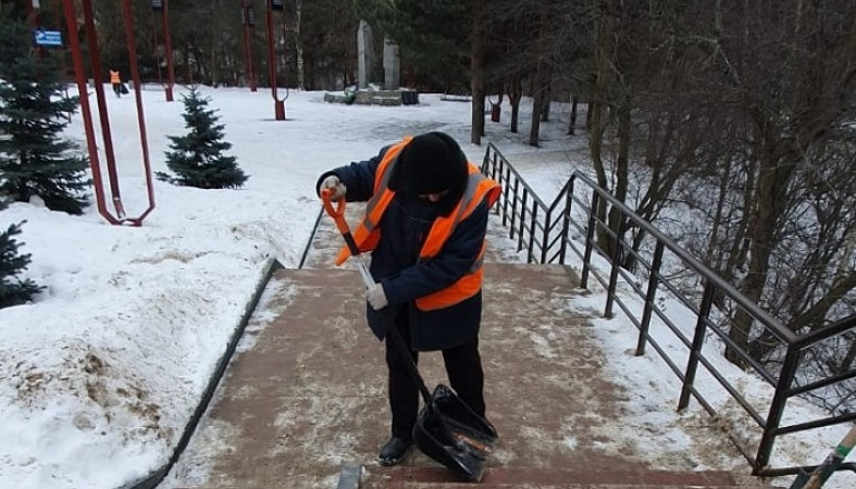 Особое внимание при уборке пешеходной инфраструктуры по-прежнему уделяется лестницам. Спуски обрабатывают противогололедными материалами.