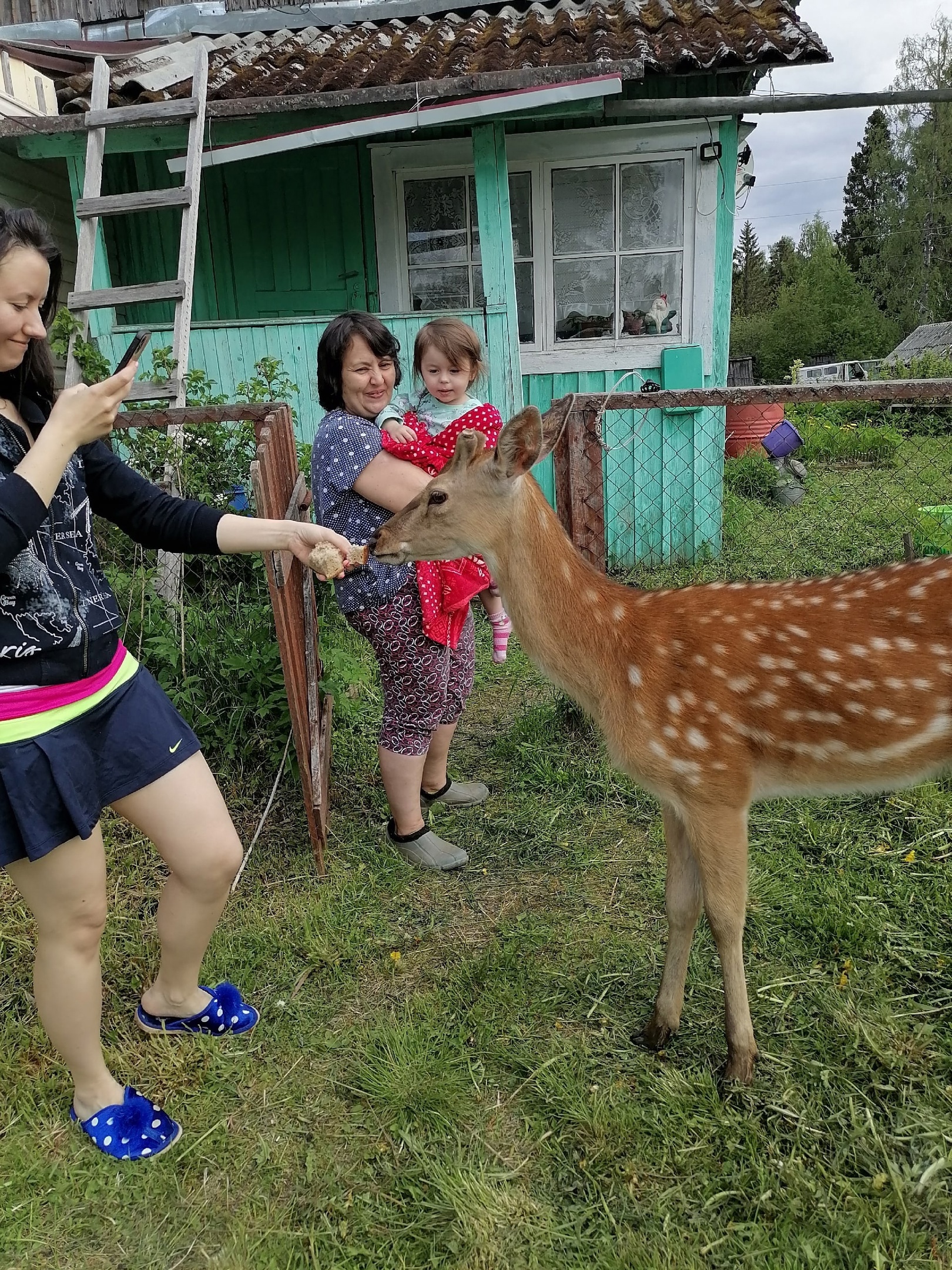 Накануне пятнистые олени прогулялись по поселку Харлу Питкярантского района.