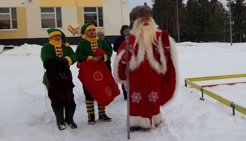 Карельский Дед Мороз торжественно вручил волшебные зимние букеты из лопат воспитанникам детского сада «Лесовичок» из поселка Чална