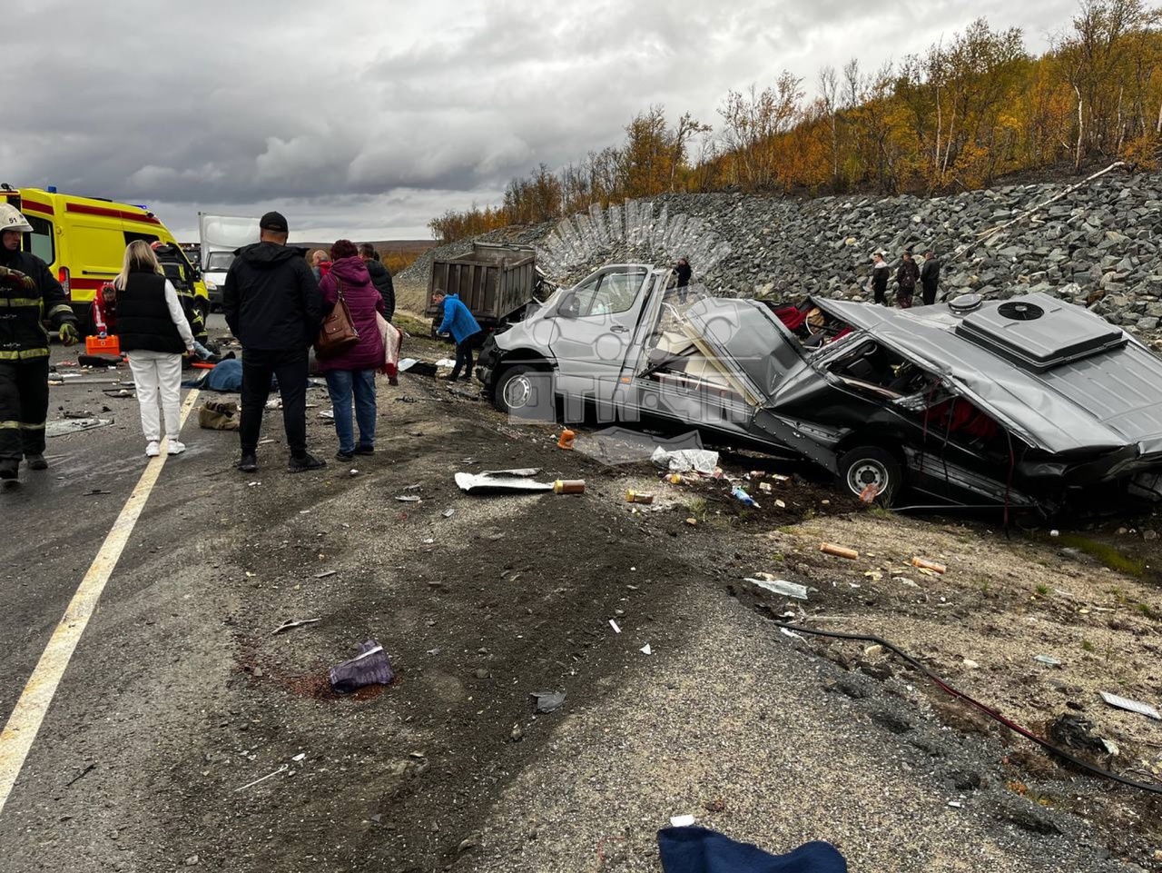 На трассе «Кола» грузовик, которым управлял пьяный угонщик, протаранил пассажирский микроавтобус.