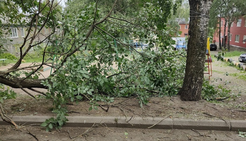 Утром 2 июля в одном из дворов Петрозаводска рухнуло дерево.