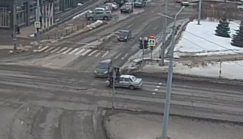 Сегодня в 11:57 в Петрозаводске на площади Гагарина произошло ДТП. Инцидент попал в объектив камеры наблюдения компании CityLink.
