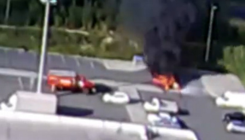 Камера наблюдения сняла, как автомобиль сгорел у «Ленты» на Кукковке