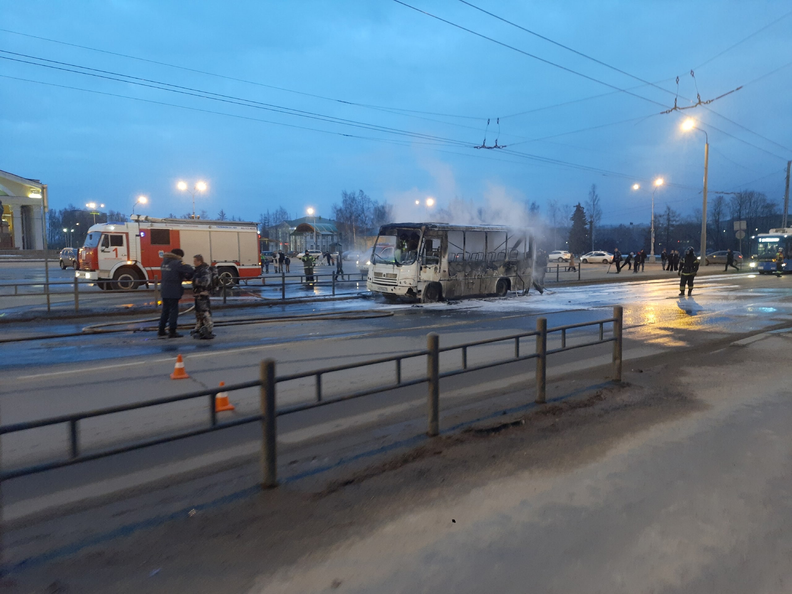 Сегодня, 1 апреля, напротив площади Кирова в Петрозаводске загорелся автобус.