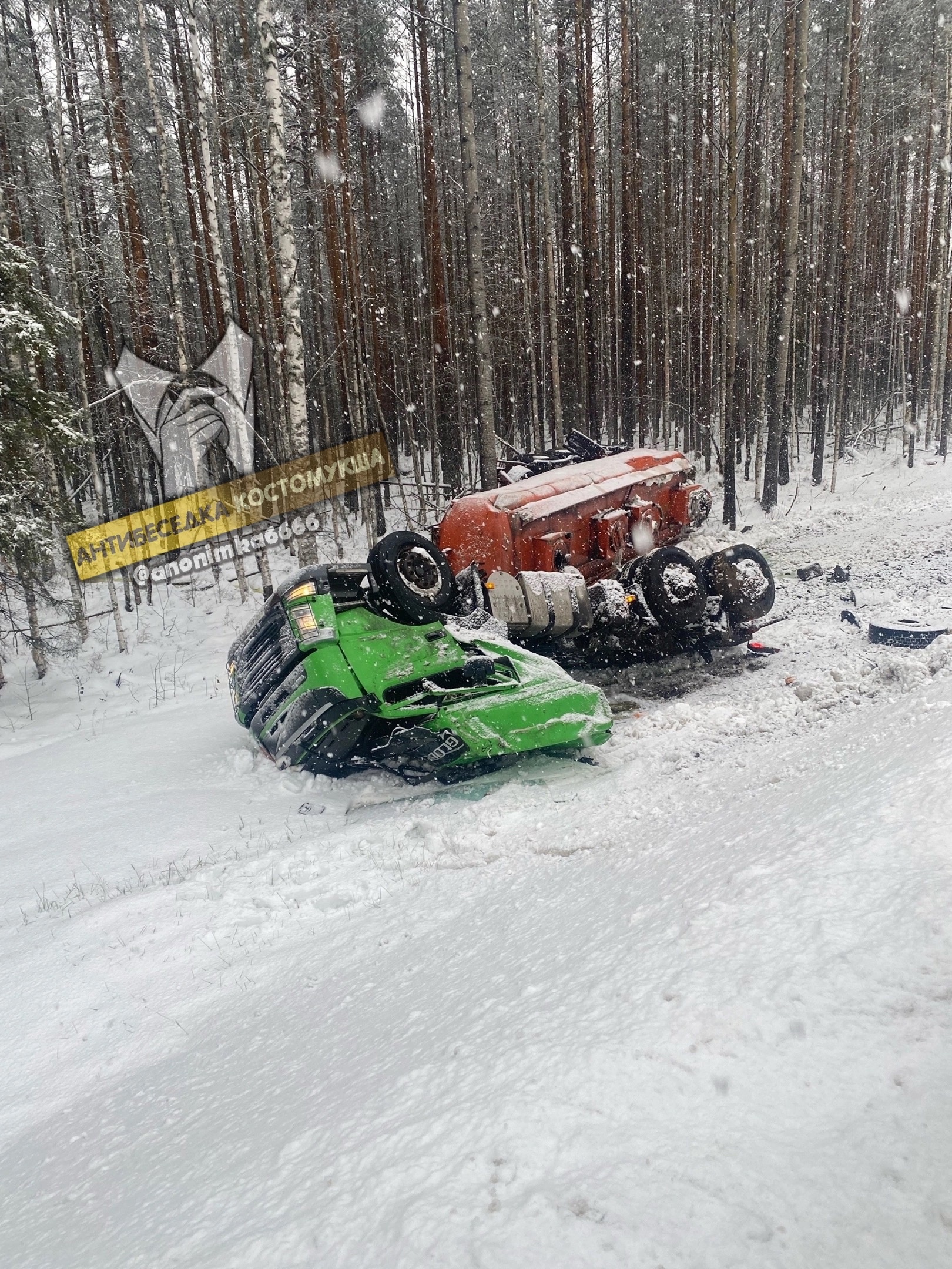 По его словам, в районе съезда с трассы Кола на дорогу Кочкома-Костомукша произошло опрокидывание бензовоза.