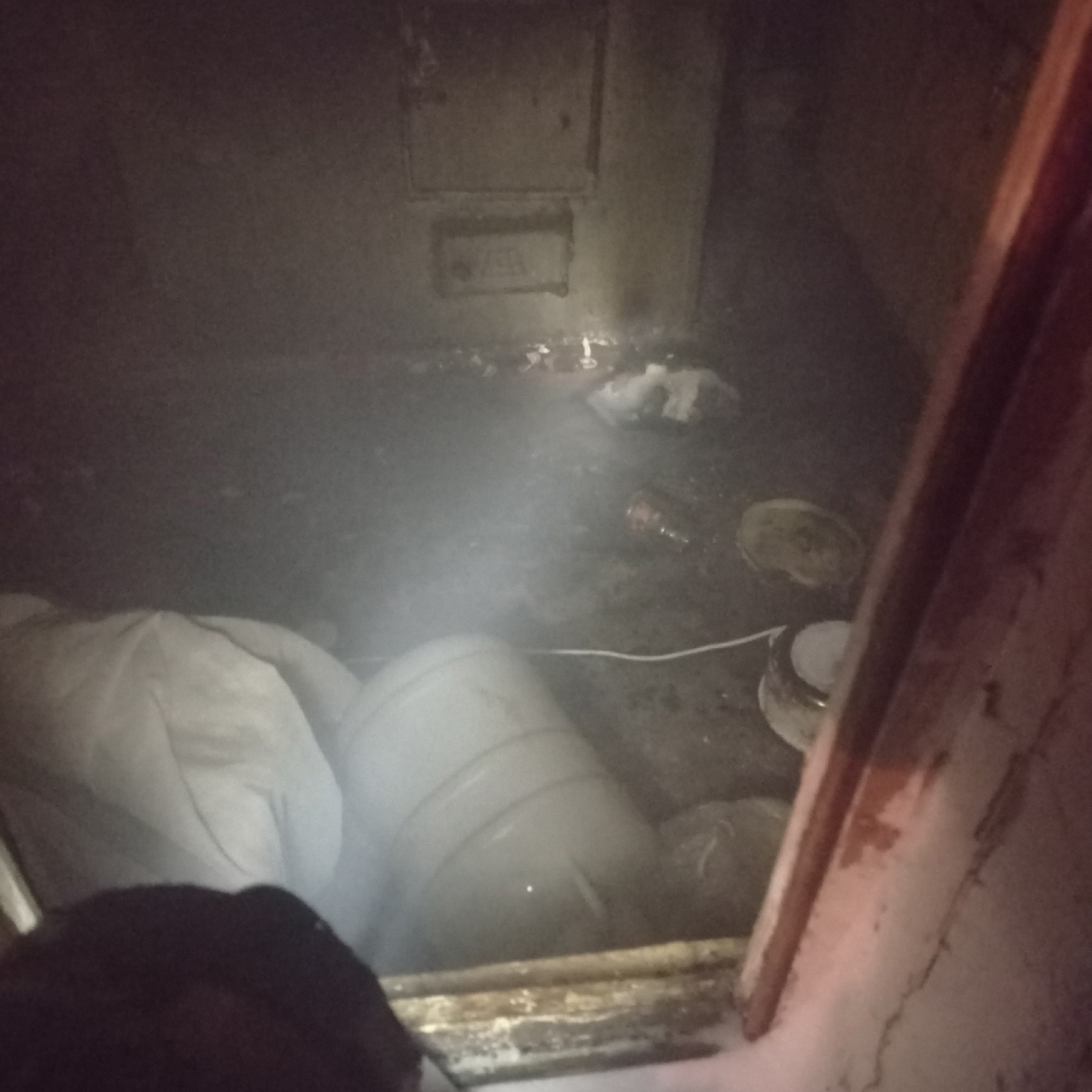 К моменту приезда квартира была в дыму, в полу кухни прогар площадью 1 квадратный метр. Из квартиры вывели двух человек. Пожар потушили к 02:30.