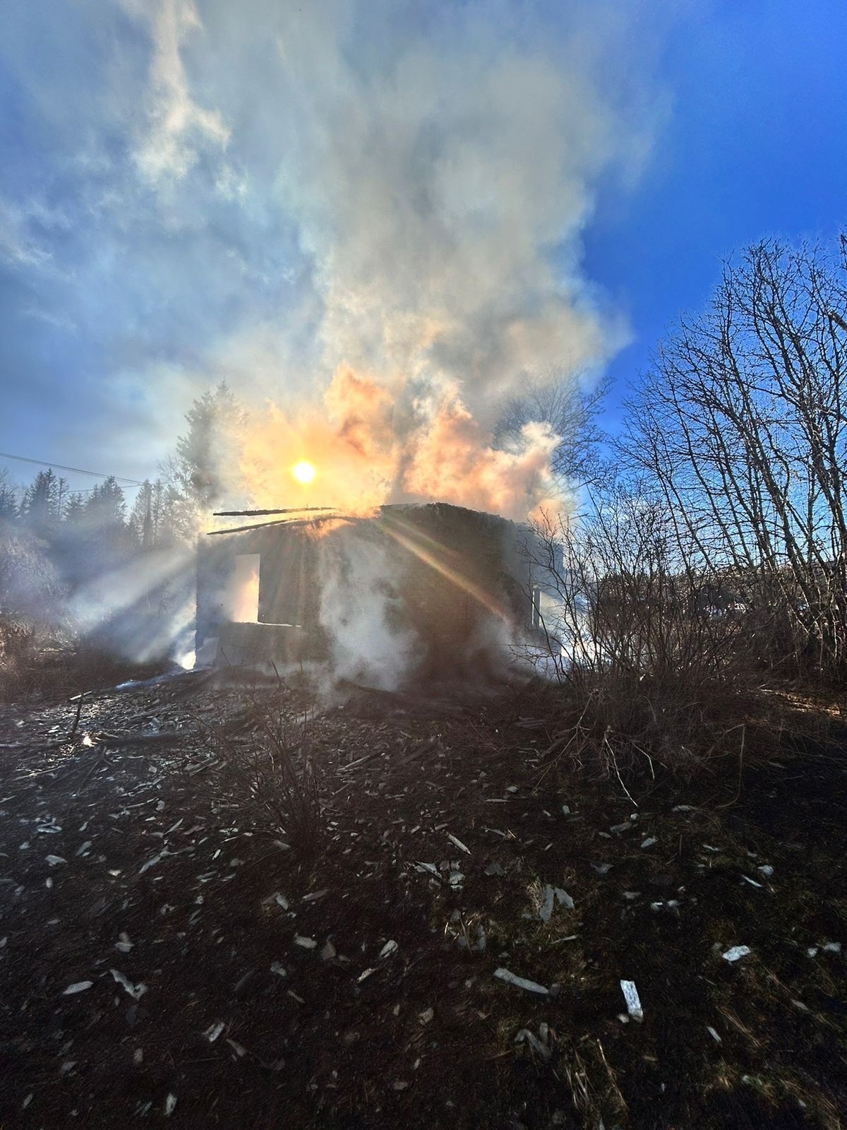 фото: © 38 пожарно-спасательная часть Сортавала / ВК Огнеборцы пожарно-спасательной части Сортавалы и Хелюля разбирают и проливают конструкции.