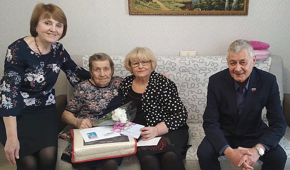 В тот же день Дмитрий Ивасько и Александр Ершов вместе с руководителем Петрозаводского подразделения Комплексного центра социального обслуживания населения РК Валентиной Картавенко посетили петрозаводчанку Евдокию Петровну Литвинову, которая отметила 95-летие. Депутаты вручили юбилярше поздравительное письмо Президента России Владимира Путина и подарки.
