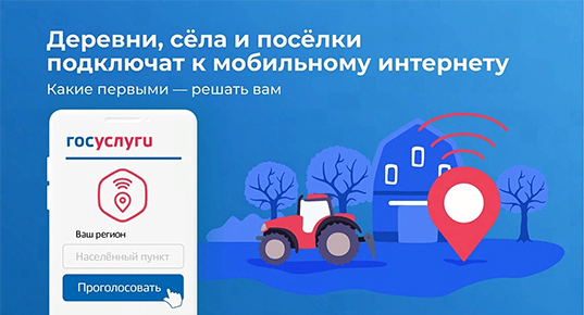 С 17 июля текущего года Минцифры России в рамках реализации проекта «Устранение цифрового неравенства 2.0» проводит новый этап голосования за подключение к сети Интернет сельских населенных пунктов численностью населения от 100 до 500 человек и не обеспеченных услугами сотовой связи.