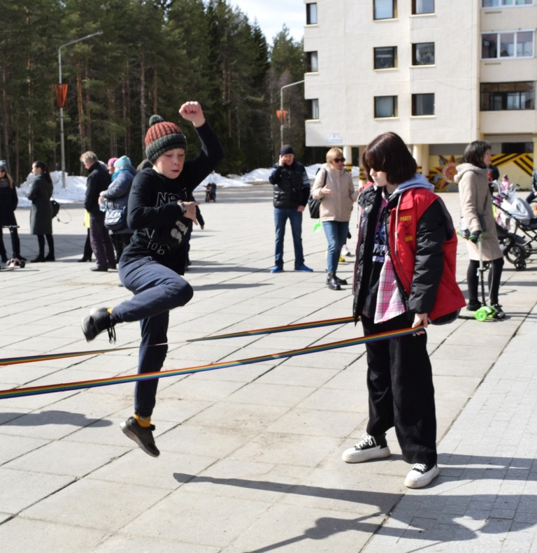 В 12:00 на малой площади у центра «Дружба» для детей праздничную программу «ПрыгСкок» проведет Ольга Кожевникова и аниматоры. Волонтеры из отряда PartyHard организуют игры и соревнования по прыжкам через скакалку и игре в резиночку.