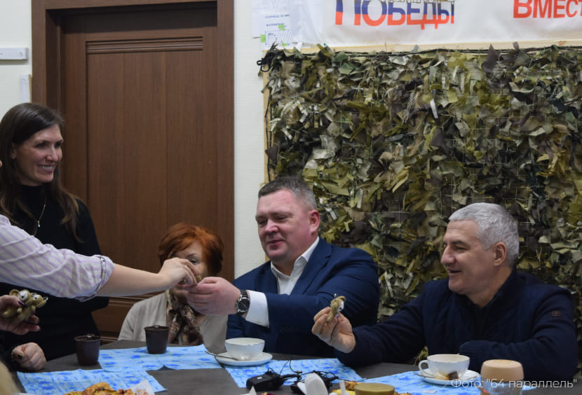 Руководитель фонда Оксана Шаманская, участница фонда Елена Зезюльчик, которая активно занимается организацией сбора и отправки гуманитарной помощи бойцам в зону СВО, и волонтёры акций рассказали Артуру Парфенчикову и членам правительственной делегации о своей деятельности. Они продемонстрировали маскировочные сети, теплоизоляционные одеяла и другие изделия, которые они изготавливают для отправки мобилизованным и участникам СВО.