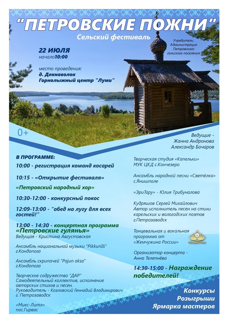 22 июля в 10 часов д. Декнаволок Петровского сельского поселения Кондопожского района пройдет сельский фестиваль "Петровские пожни".
