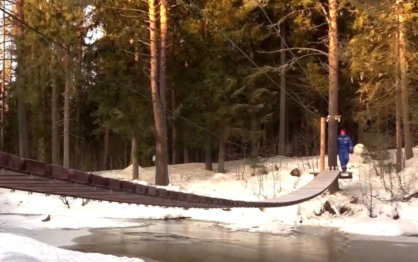 Строительство подвесного пешеходного моста около второго Фонтана на реке Лососинка завершено раньше срока.