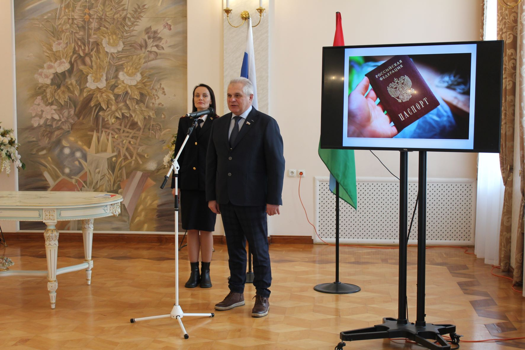 С получением главного документа гражданина участников церемонии также поздравила начальник паспортно-визового отделения отдела по вопросам миграции УМВД России по г. Петрозаводску Мария Родионова. После церемонии вручения паспортов прозвучал государственный Гимн Российской Федерации.