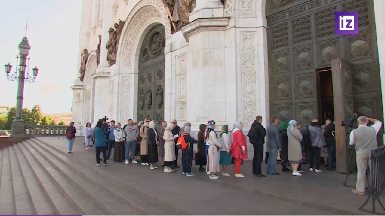 Прихожане в субботу, 4 июня, начали заходить в храм Христа Спасителя в Москве, где установили икону «Троица» Андрея Рублева. На кадрах «Известий» видно, как верующие выстроились в длинную очередь и по очереди проходят в храм, чтобы поклониться иконе.