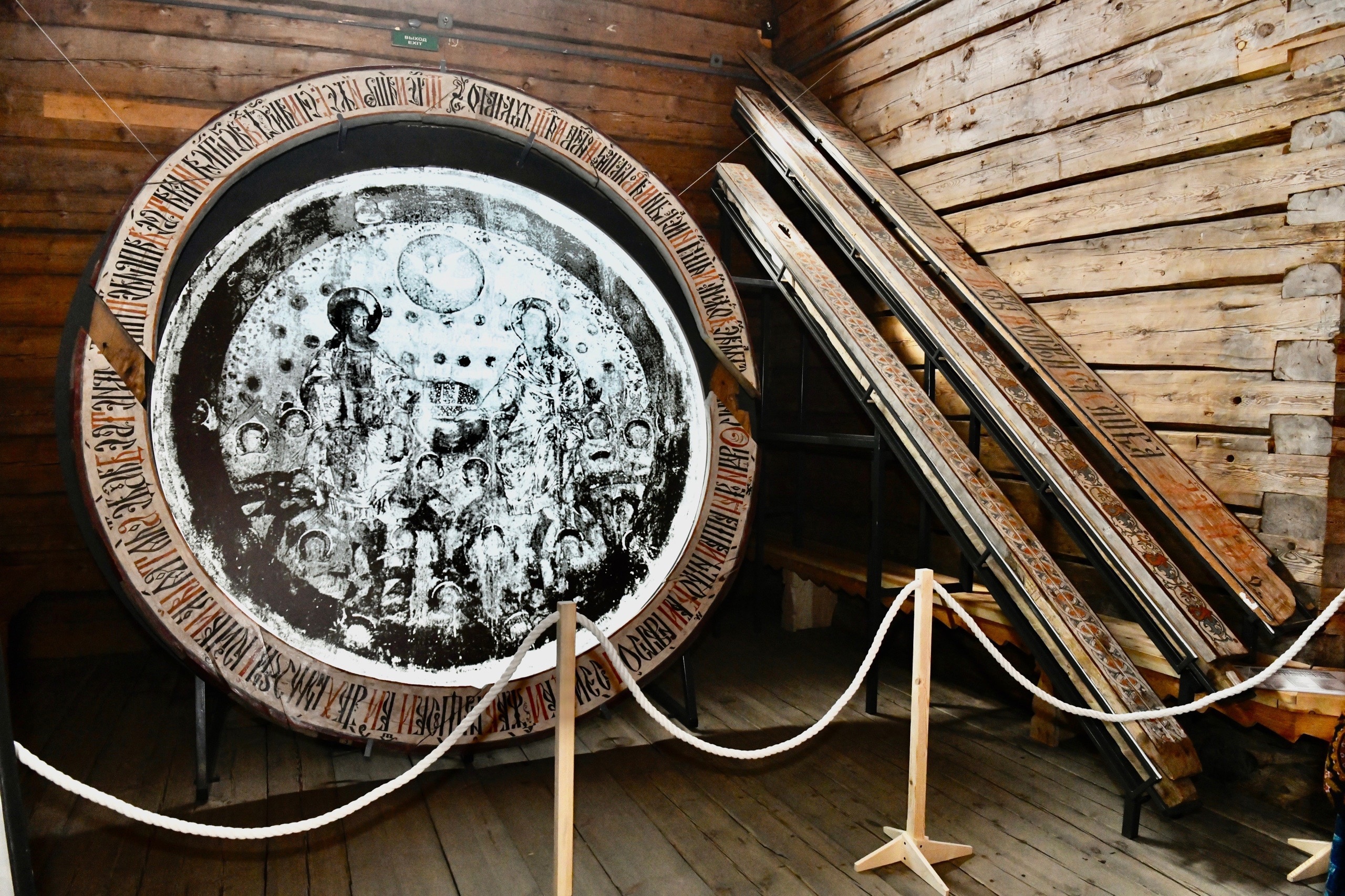 Экспозиция посвящена иконостасу и потолочным иконам Преображенской церкви.