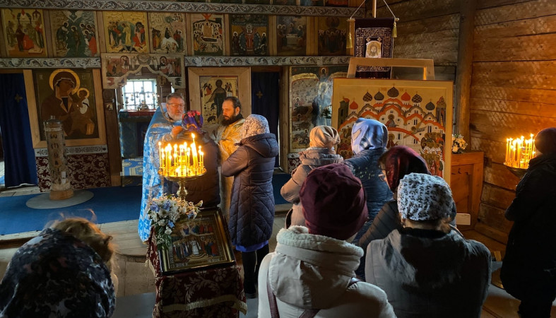 В престольный праздник церкви Покрова Пресвятой Богородицы настоятель Спасо-Кижского прихода отец Павел отслужил в храме праздничную литургию. На службу собрались местные жители, сотрудники музея и паломники острова Кижи.