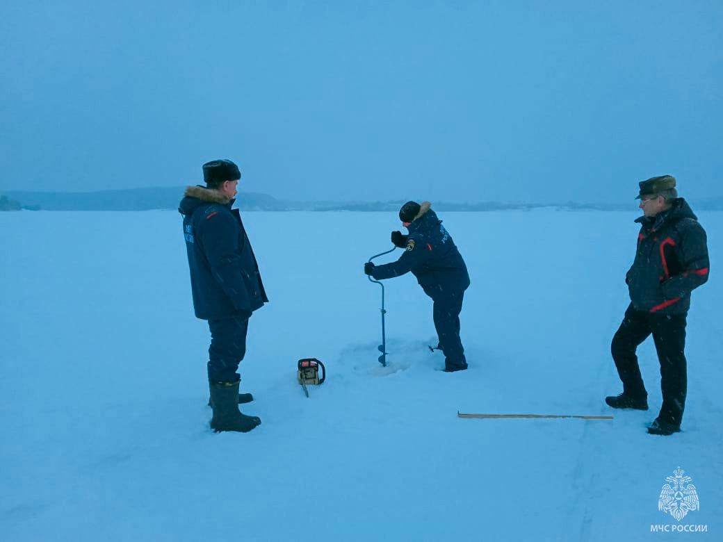 фото: © МЧС по Республике Карелия / ВК Накануне Крещения спасатели Сортавалы замерили толщину льда в месте оборудования купели.