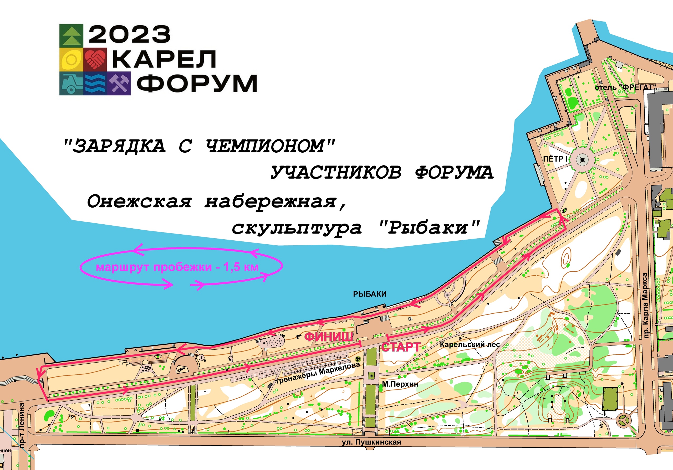 Начало мероприятия в 08:30 на набережной Онежского озера возле уличных тренажеров MB Barbell.