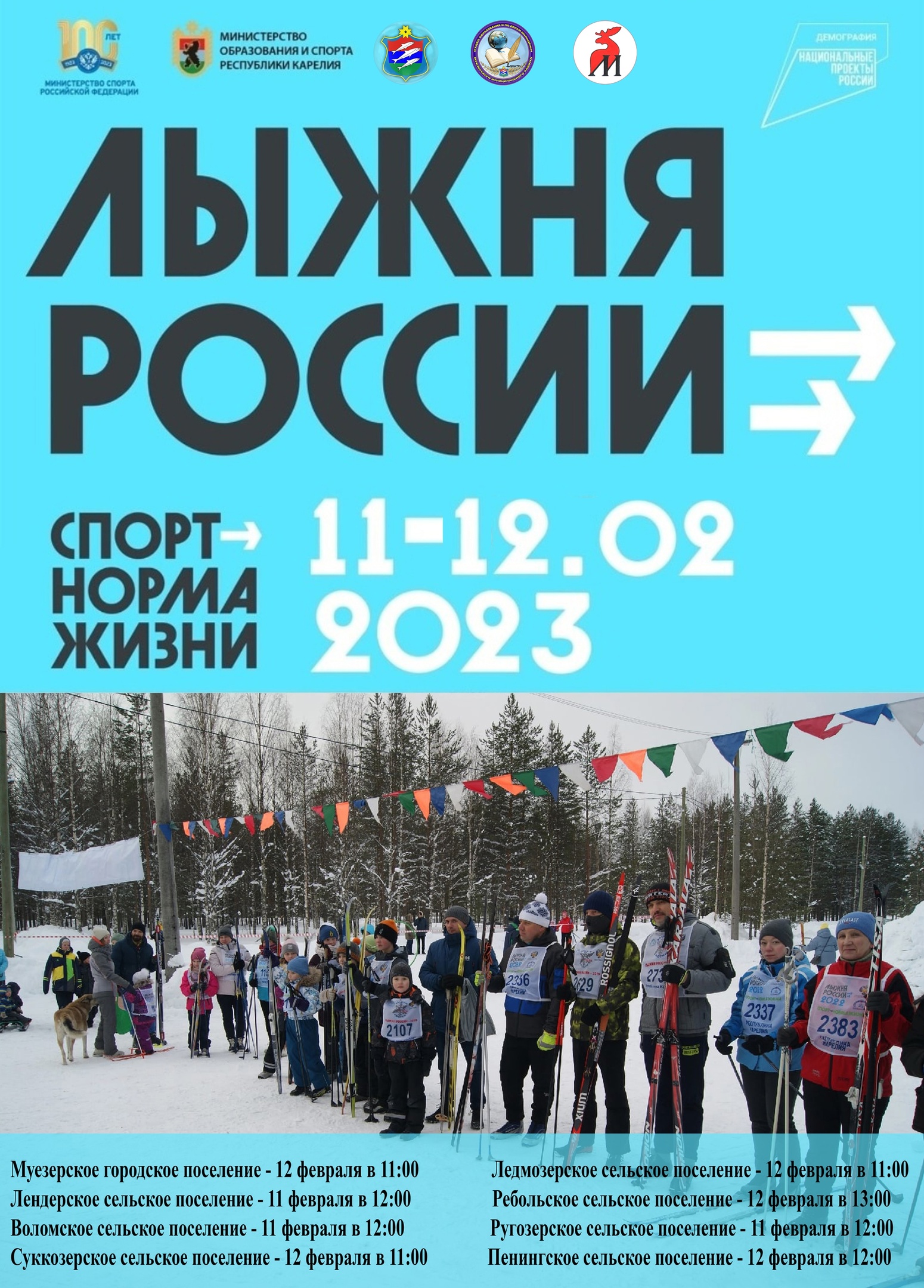 Предлагаем вам 11-12 февраля 2023 года присоединится и принять участие в массовом спортивном мероприятии "Лыжня России 2023"
