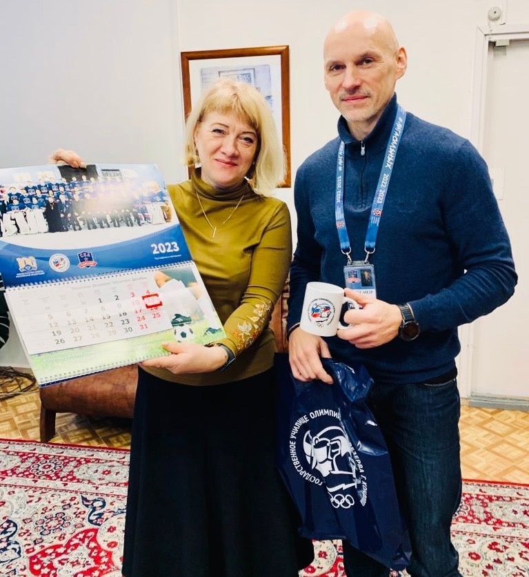 Воспитанникам вручили перчатки и наклейки с олимпийской символикой, а также календари Училища олимпийского резерва на 2023 год.