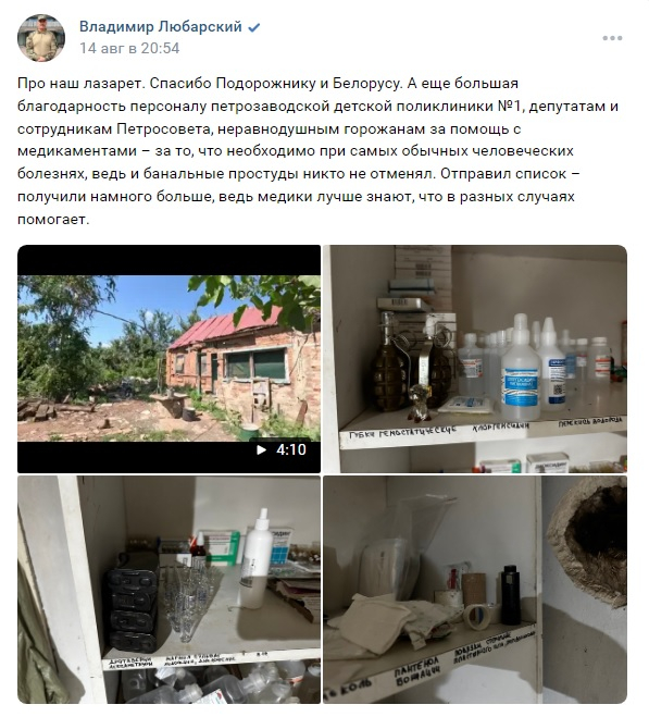 В акции вместе с депутатами приняли участие коллектив Городской детской поликлиники №1 и неравнодушные петрозаводчане. На прошлой неделе груз был доставлен в боевые подразделения, сообщил Владимир Любарский . Владимир Константинович поблагодарил горожан за помощь, отметив, что полевой медпункт получил расширенный список медикаментов и препаратов, в том числе от простуды. Лекарства от сезонных заболеваний также очень необходимы военнослужащим на фронте.