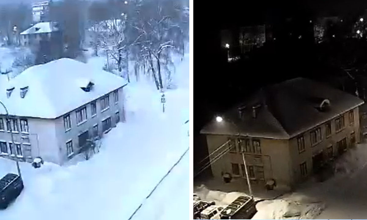 В социальных сетях пользователи появилось видео с камеры наружного наблюдения, на котором Надвоицы озаряется вспышкой. На несколько секунд поздним вечером становится светло, как днем.