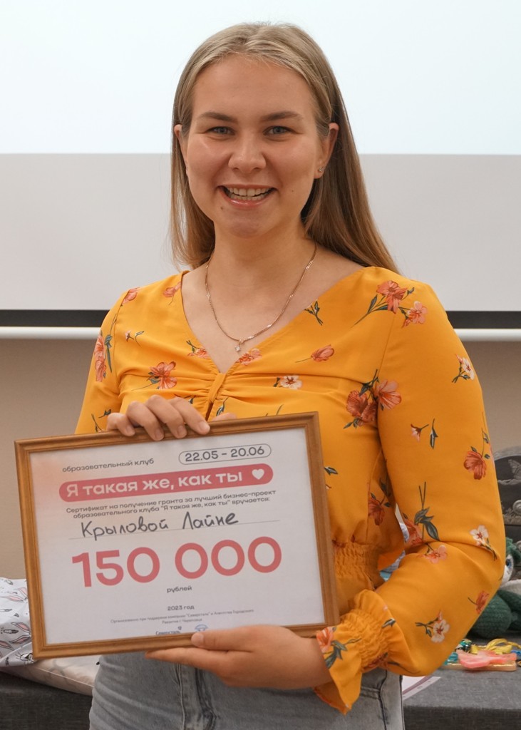 Преподаватель английского языка Лайна Крылова получила 150 тысяч рублей на развитие бизнеса от компании «Северсталь». Девушка стала победительницей грантового конкурса на лучший бизнес-проект образовательного клуба «Я такая же, как ты», проводимого череповецкими экспертами Агентства Городского Развития.