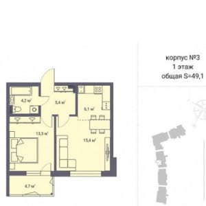 Kомнaты: 15,4 кв. м и 13,3 кв.м