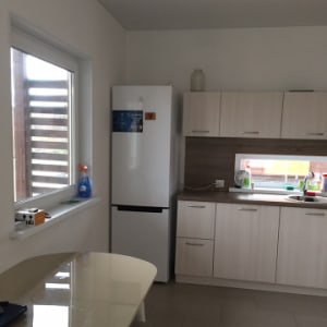 В доме полностью встроенная кухня с техникой ( плита, духовой шкаф, посудомойка)